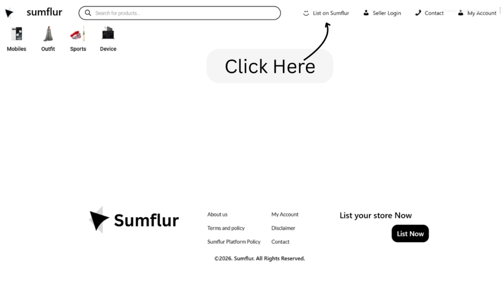 Step 1: Visit the “List on Sumflur” Page Go to sumflur.com and click on the List on Sumflur link, usually found in the menu or at the top of the website.