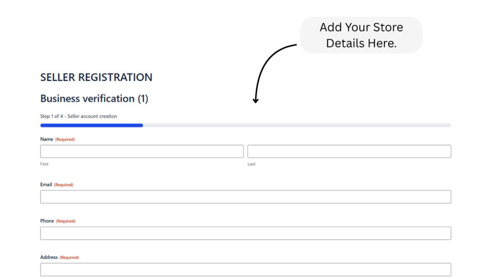 Step 3: Fill Out the Registration Form Enter your basic details such as your name, shop name, email address, phone number, and business address. Create a secure password for your account.